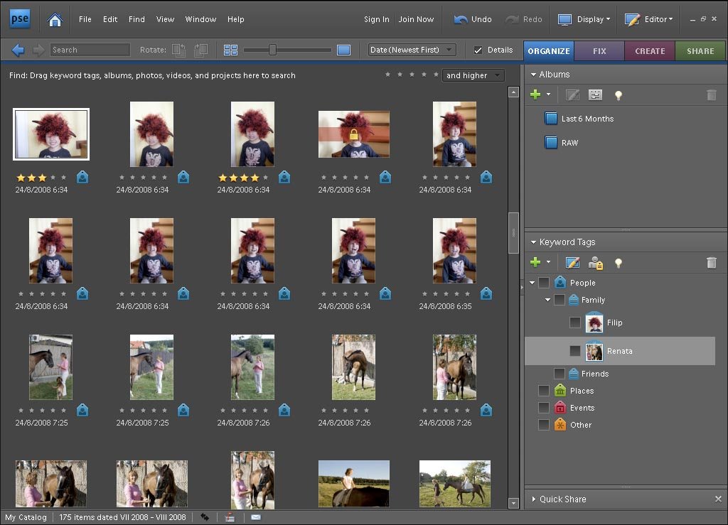 Organizér se stará hlavně o import a správu fotografií – umožňuje snadno importovat fotografie z libovolných zdrojů včetně komplexního přejmenování či roztřídění do složek. Fotky a videa z vašeho fotoaparátu můžete samozřejmě organizovat podle klíčových slov, pracovat s veškerými metadaty, či organizovat podle časové osy. Nově je v této verzi integrované rychlé fulltextové vyhledávání.